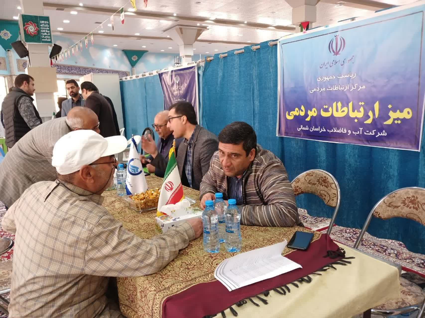به گزارش روابط عمومی شرکت آب و فاضلاب خراسان شمالی، باحضور امیرفاطمی مدیرعامل شرکت آب و فاضلاب خراسان شمالی، معاونان و مدیران ستادی، میز خدمت آبفای استان در مصلی امام خمینی(ره) بجنورد برگزار شد و شهروندان از نزدیک مسائل، درخواست‌ها و پیشنهادهای خود را در حوزه آب و فاضلاب با مدیران در میان گذاشتند.